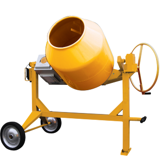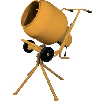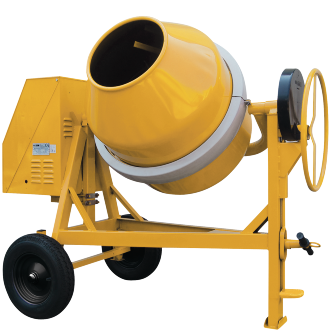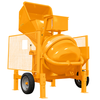 Vi har også tromleblandere med mulighed for trailersammenkobling (CMT), ekstra store modeller (CMX, CMR), små modeller, der kan køres som trillebør (CMW) – og så er der den støjsvage model (CMG).